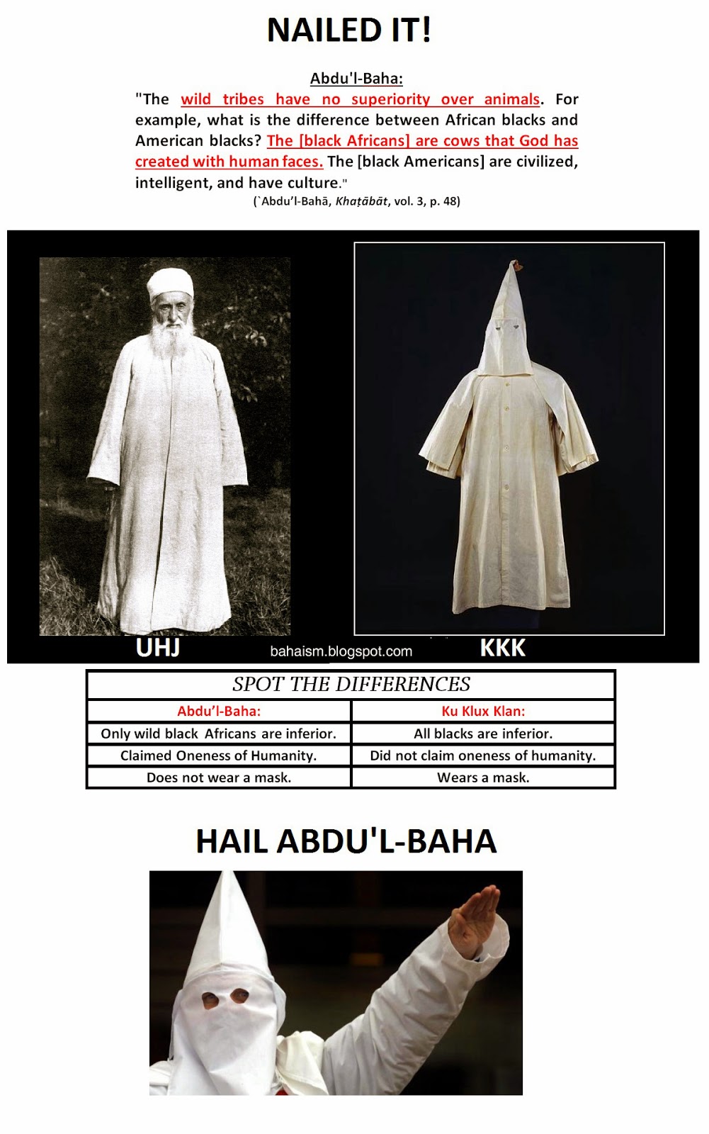 after a white European. Baha’is call this the “Oneness of Humanity”!